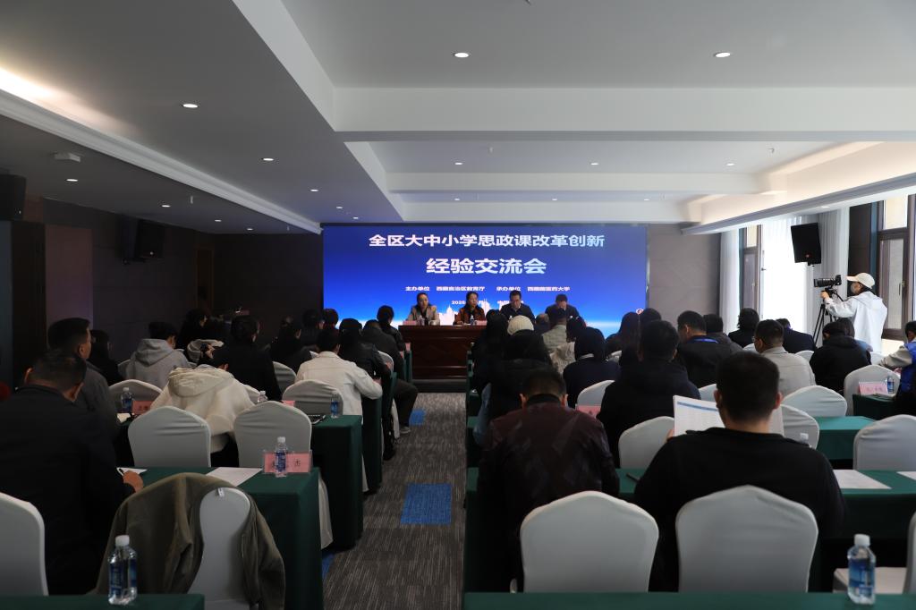 为深入贯彻落实习近平总书记关于学校思政课建设的重要指示精神,全面落实新时代学校思政课建设推进会的部署要求,扎实推进大中小学思政课一体化共同体建设,10月15日至18日,全区大中小学思政课改革创新交流会在拉萨举行。来自全区各地市教育局、大中小学及相关单位的50 余名代表齐聚拉萨,聚焦“大中小思政一体化共同体建设”,共商思政课高质量发展大计。自治区教育厅党组成员、副厅长达瓦卓玛,西藏藏医药大学党委书记、副校长鞠明兵出席会议并讲话,西藏藏医药大学党委委员、副校长边巴仓决出席会议,西藏教育厅思政处副处长吴海东主持会议。