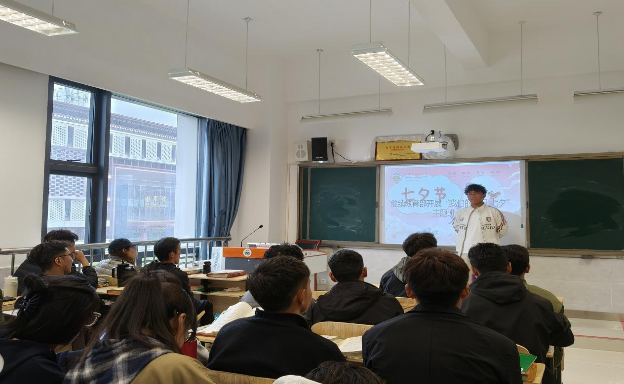 班会伊始,辅导员金珠措姆以PPT、短视频等形式,向同学们系统讲解七夕节的起源与传统习俗——从“牛郎织女”的民间传说,到穿针乞巧、晒书晒衣、供奉“磨喝乐”等古老习俗,让同学们了解到七夕不仅是“情人节”,更是承载着古人对“巧手”“智慧”的追求、对家庭团圆期盼的传统节日。同时,结合现代社会对七夕的新诠释,引导大家思考如何在当代传承节日中的“浪漫”与“温情”内核。