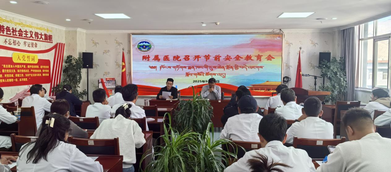 为深入贯彻落实西藏藏医药大学关于节日期间安全与廉洁工作的决策部署,扎实筑牢国庆、中秋双节期间医疗安全防线,强化职工廉洁自律意识,切实保障患者就医安全,维护医院正常诊疗秩序与平稳运行,9月29日下午,西藏藏医药大学附属医院组织召开国庆中秋双节前安全教育会。院长仁青加、副院长白玛罗布及全体职工参加会议。